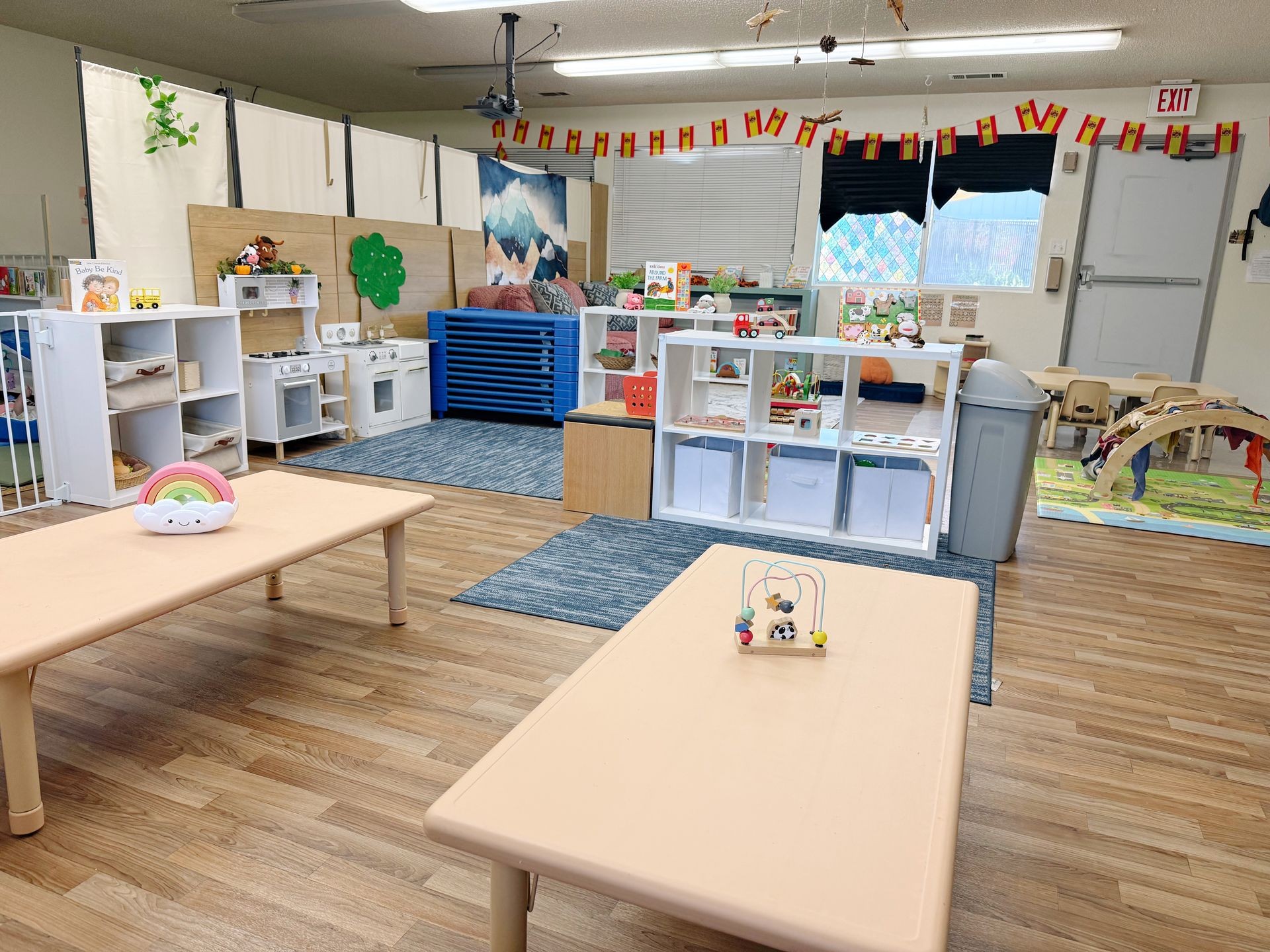 The toddler side is for children who are 12 months old or that walk and move quickly. Children are filled with curiosity, exploration, and joy with every experience.